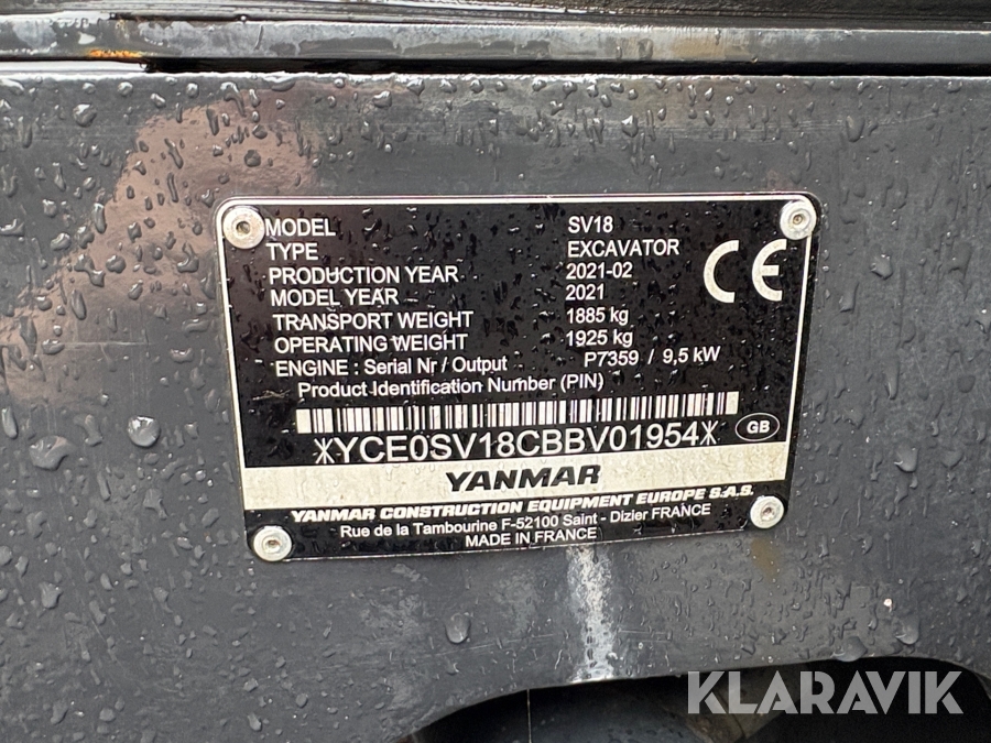 Grävmaskin Yanmar SV18 med redskap