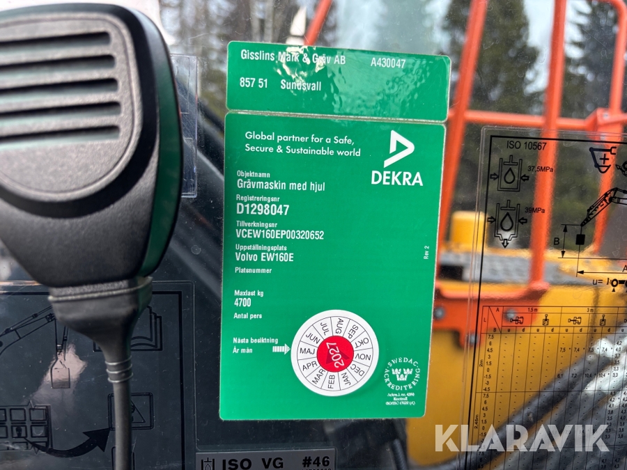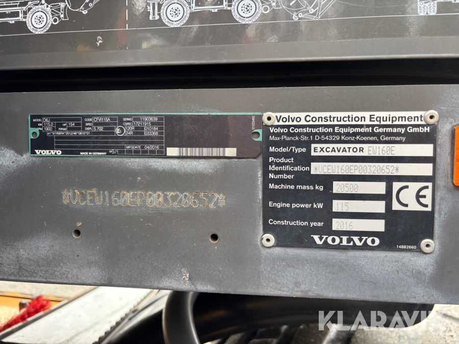 Grävmaskin Volvo EW160E med tilltrotator