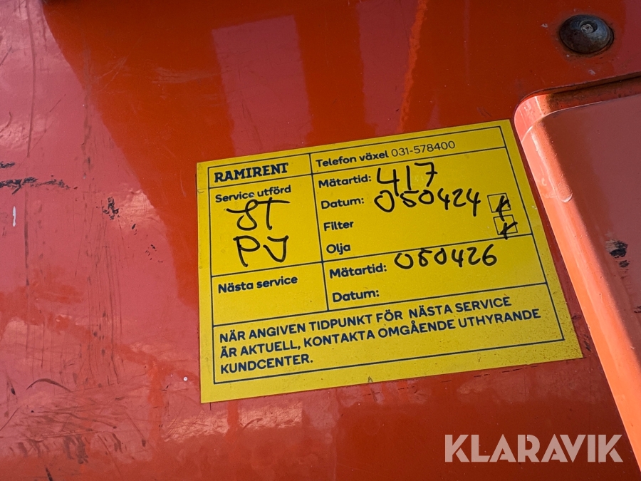 Läs om metodikenPga platsbrist är det viktigt att du som köpare hämtar inom 12 dagar från auktionsavslut. Vid frågor om frakt kontakta trade@ramirent.se.