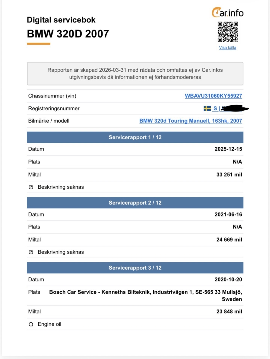 • Serie/chassinummer framgår