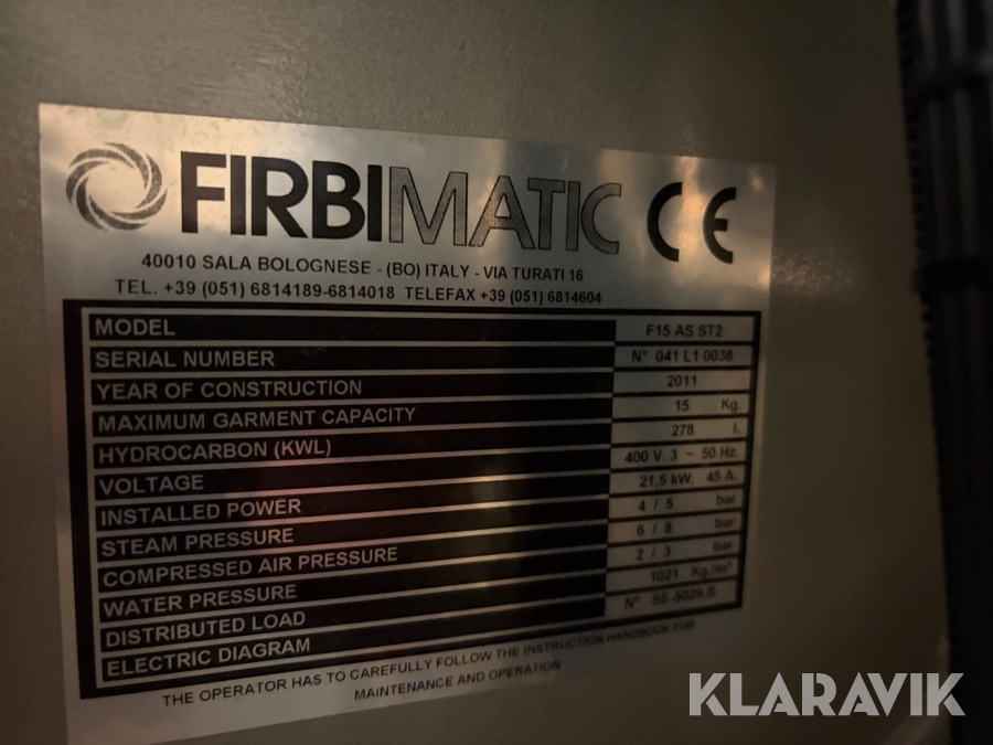Tvättanläggning med kemtvätt och utrustning