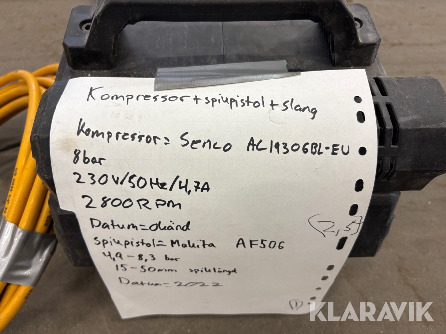 Spikpistol med kompressor och slang Makita & Senco