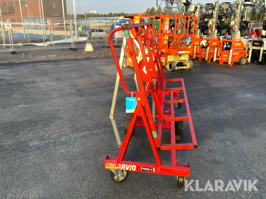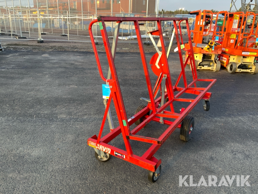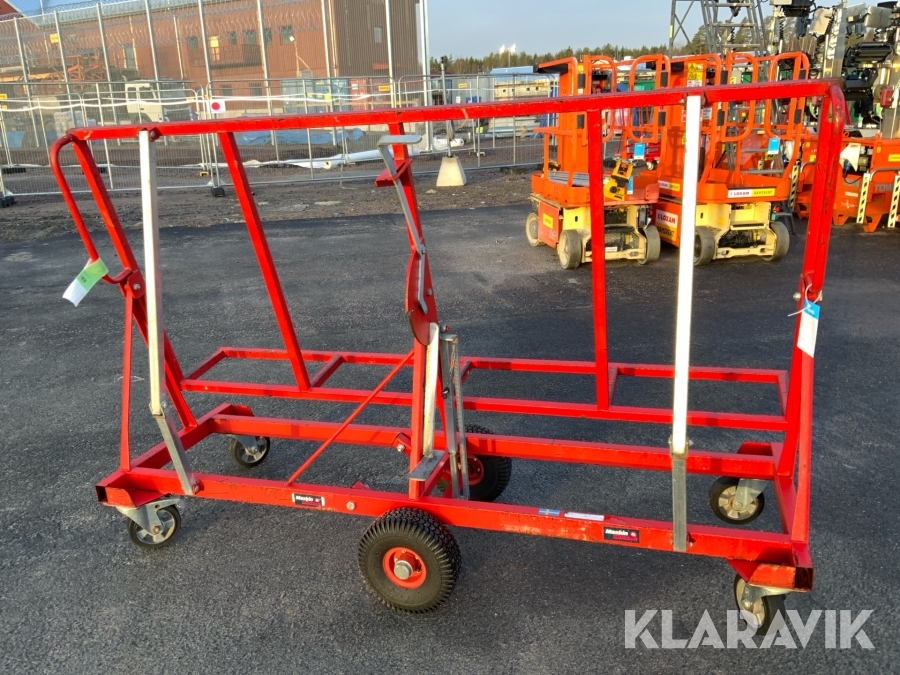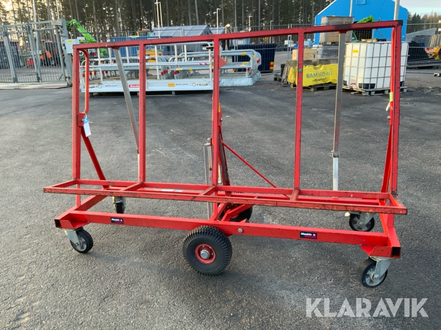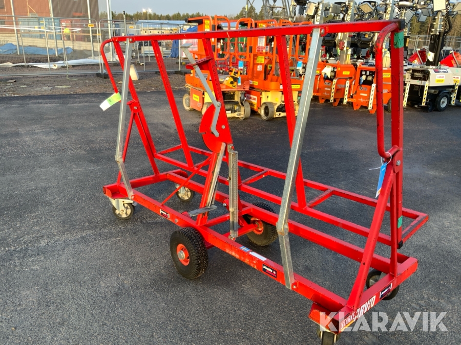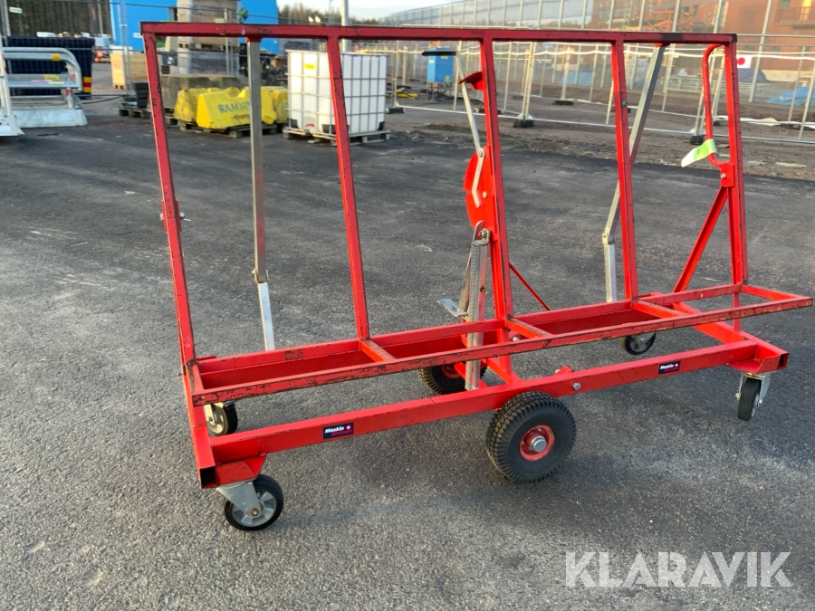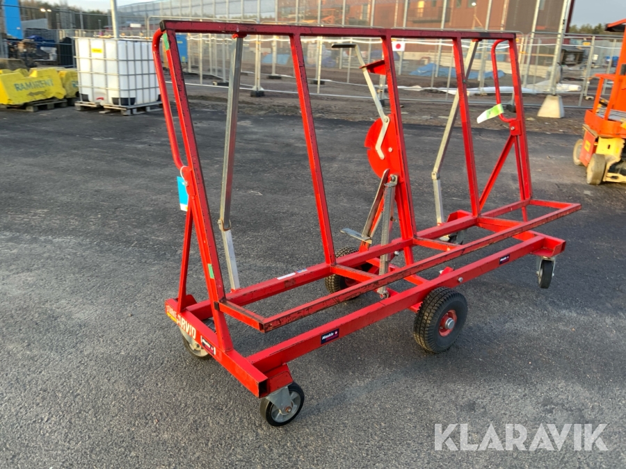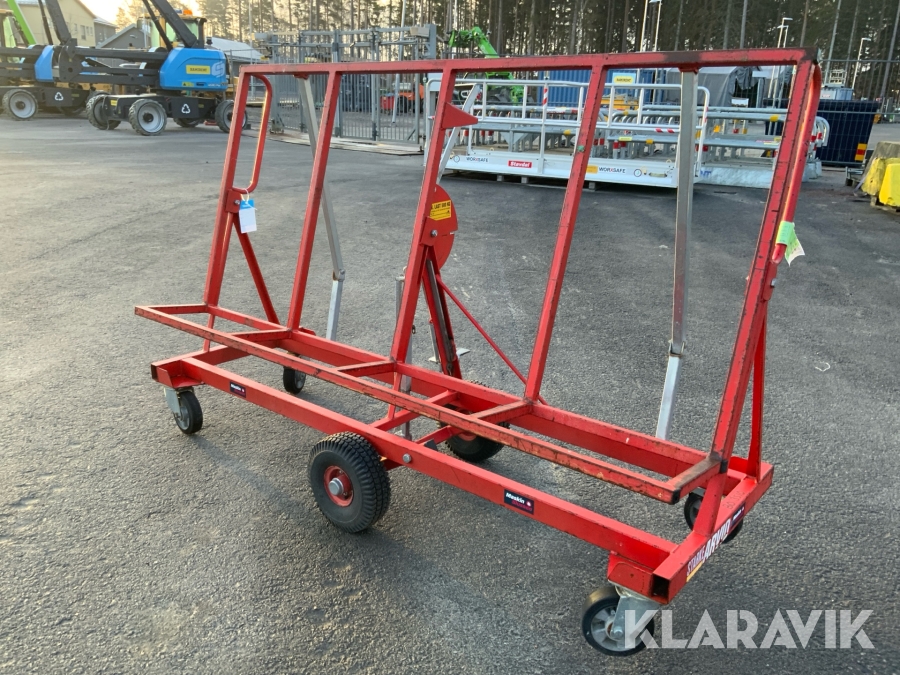 Skivvagnens funktion är att kunna förflytta gipsmaterial och skivor på ett enkelt och smidigt sätt från gipsbockar till monteringsplatsen. Tack vare dess smarta konstruktion kan du även nyttja skivvagnen för att skära till och anpassa ditt gipsmaterial direkt på plats, innan det ska vidare för montering.