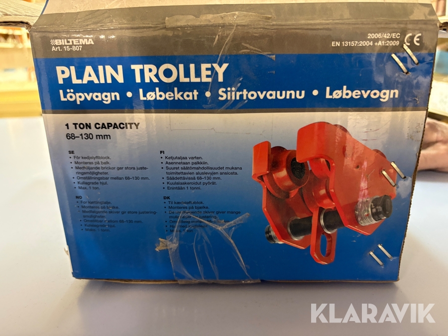 Boka frakt? Det finns ingen specifik information om frakt för just det här objektet, men om du skickar oss en förfrågan via vårt fraktformulär, så undersöker vi möjligheten. Paket, EU-pall eller större maskin? Klaravik har fraktavtal med Schenker och i de fall vi kan hjälpa till med frakt gäller det objekt som ryms i paket eller inom en EU-pall (upp till 120*80 cm och 990 kg). Det går att beställa frakt inom Sverige, dock inte till utlandet. Vid frakt på större maskiner rekommenderar vi gärna transportföretag som du kan kontakta.