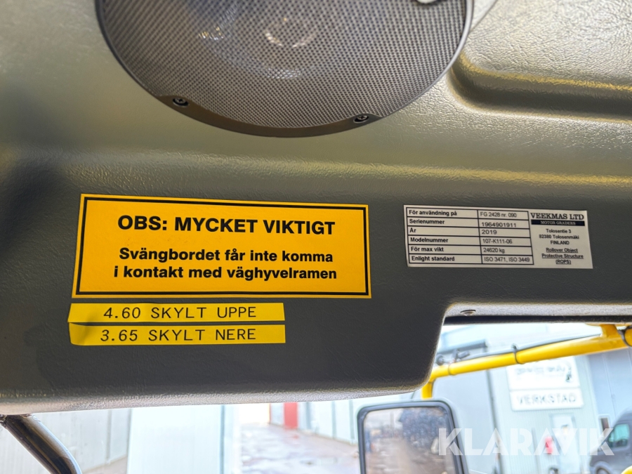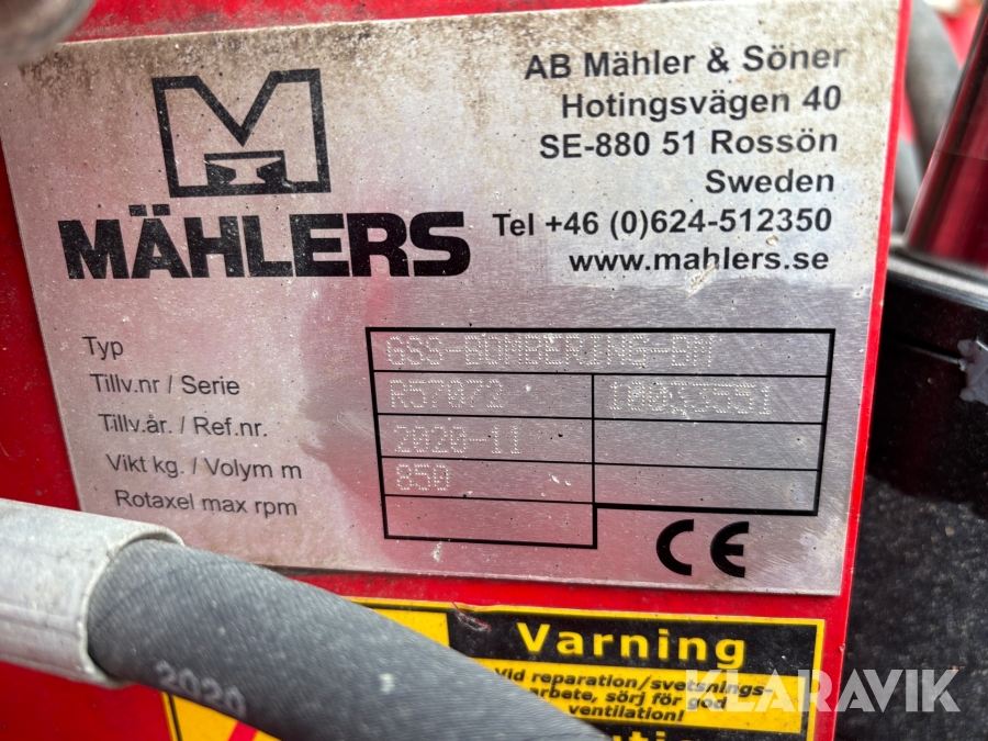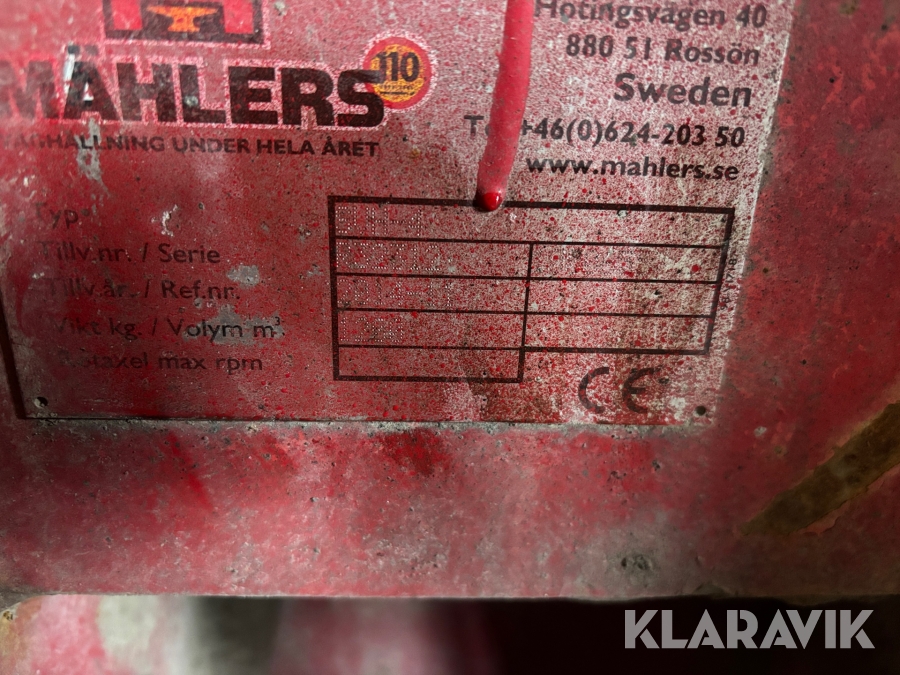 Säljare har egen trailerdragare så de kan frakta maskiner inom Sverige enligt överenskommelse med säljaren.
