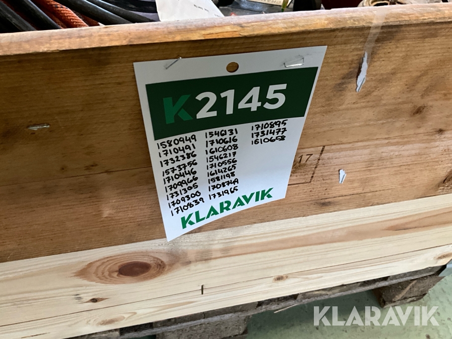 Pallar/emballage ingår EJ i auktionen men kan köpas till på plats vid upphämtningen.