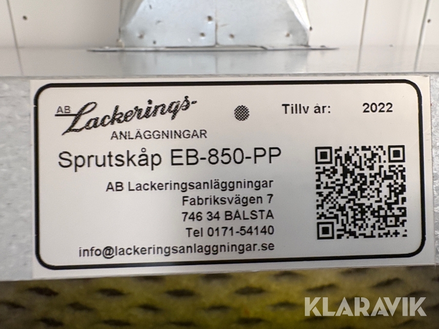 Lackskåp/ sprutskåp AB Lackeringsanläggningar EB-850-PP inkl ventrör