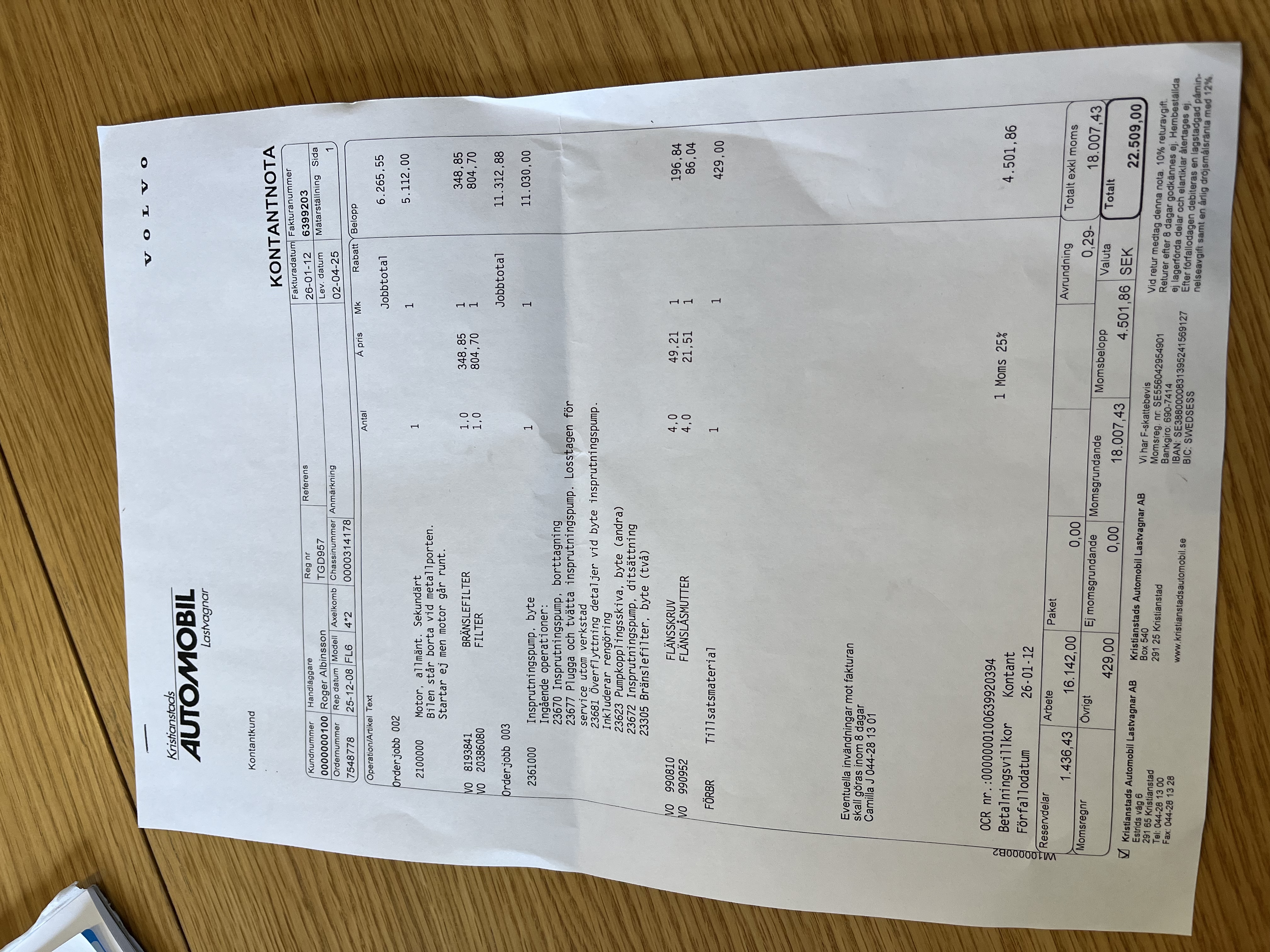 • Serie/chassinummer framgår