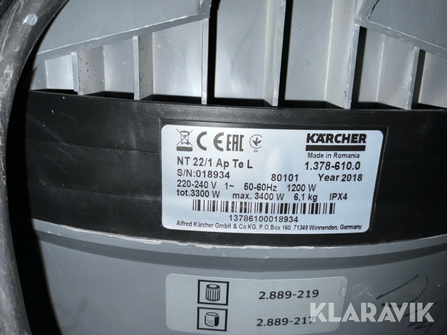 Stoftavskiljare Kärcher NT 22/1 Ap Te L