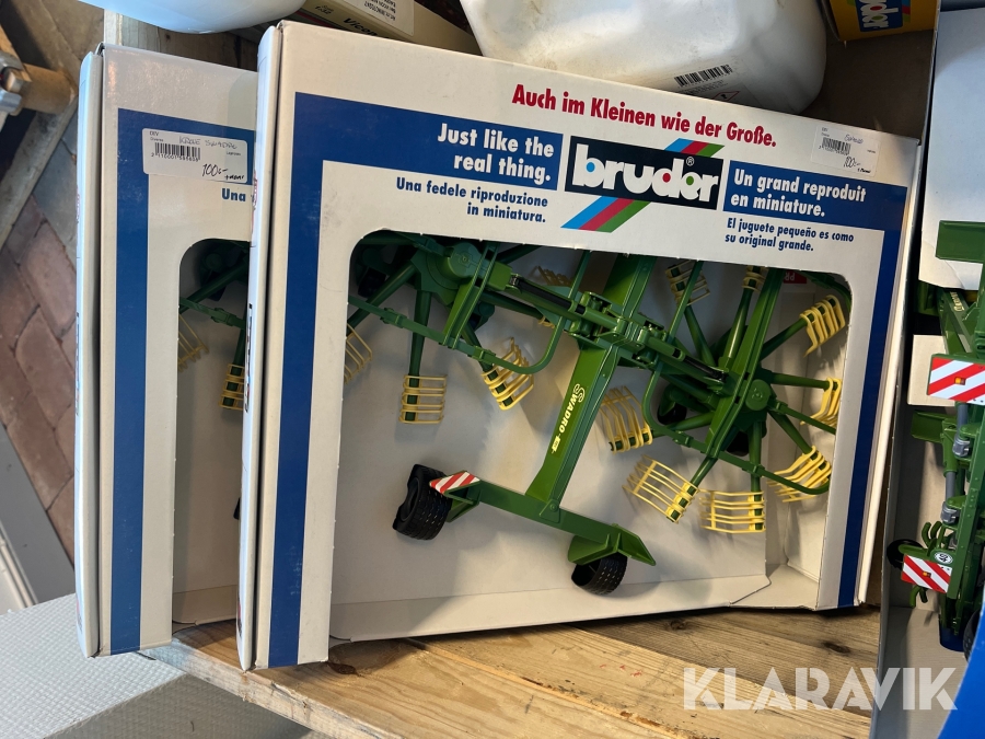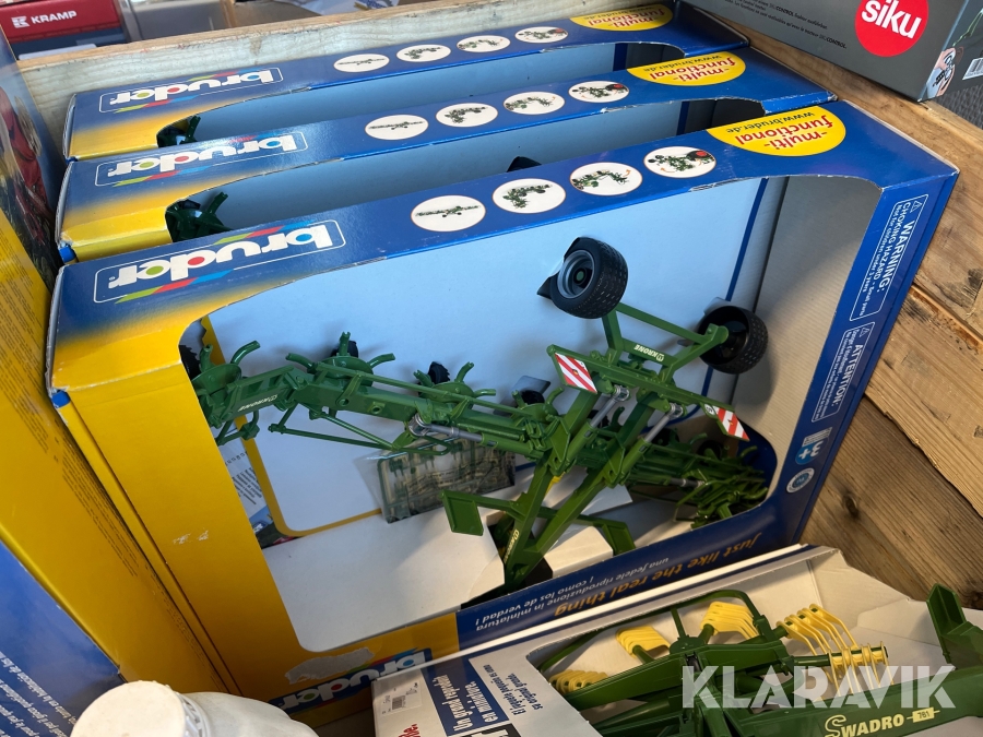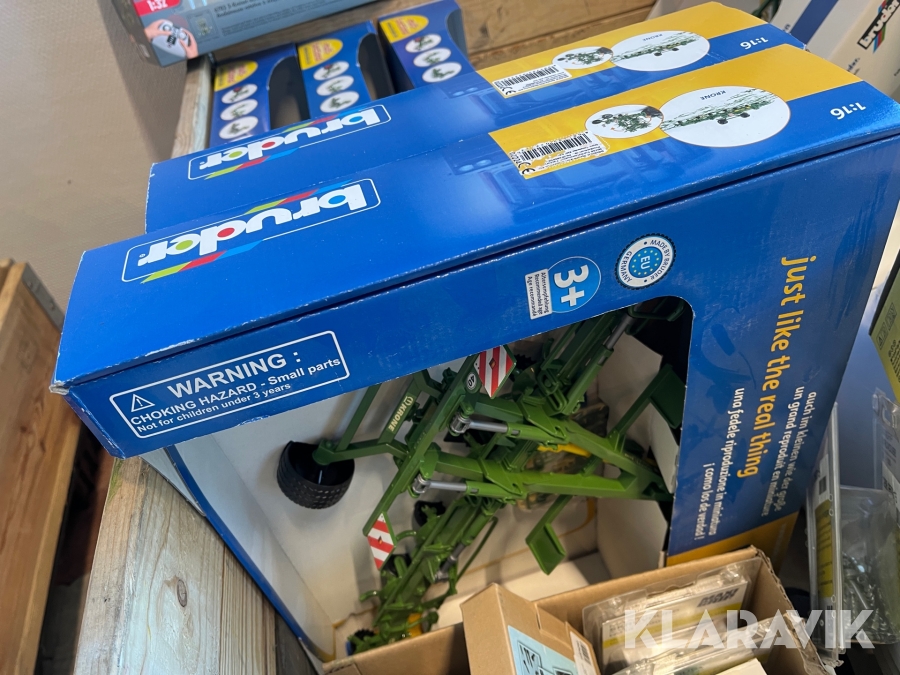 Pall med leksaker, oljor, skruvdubb, kraftuttagsaxlar Bruder, 3M Med Mera