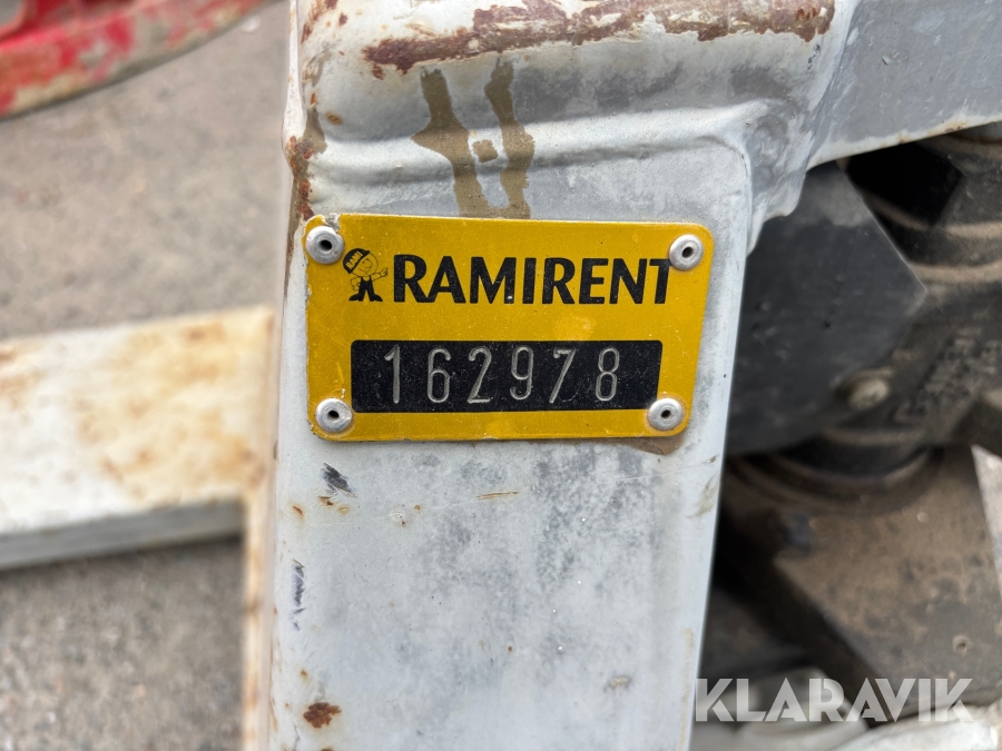 Pga platsbrist är det viktigt att du som köpare hämtar inom 12 dagar från auktionsavslut. Vid frågor om frakt kontakta trade@ramirent.se.