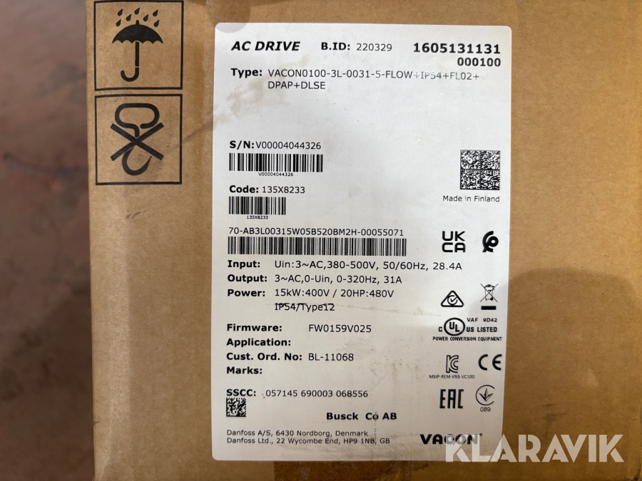 Boka frakt? Det finns ingen specifik information om frakt för just det här objektet, men om du skickar oss en förfrågan via vårt fraktformulär, så undersöker vi möjligheten. Paket, EU-pall eller större maskin? Klaravik har fraktavtal med Schenker och i de fall vi kan hjälpa till med frakt gäller det objekt som ryms i paket eller inom en EU-pall (upp till 120*80 cm och 990 kg). Det går att beställa frakt inom Sverige, dock inte till utlandet. Vid frakt på större maskiner rekommenderar vi gärna transportföretag som du kan kontakta.