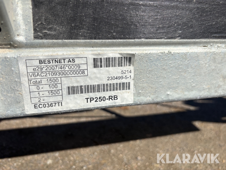 Personbilssläp Tikitrailer TP250-RB Maskintrailer