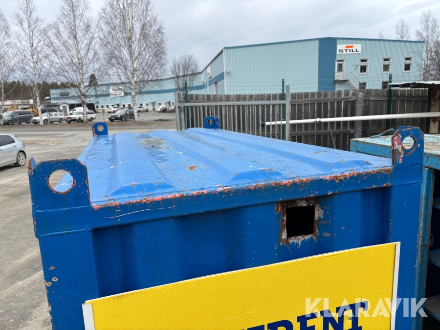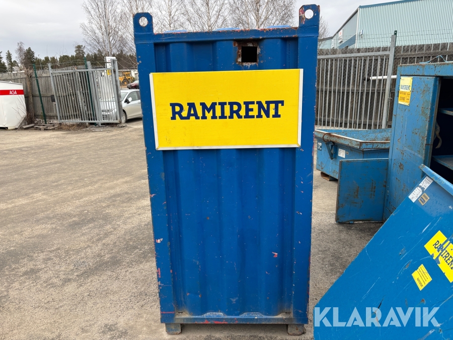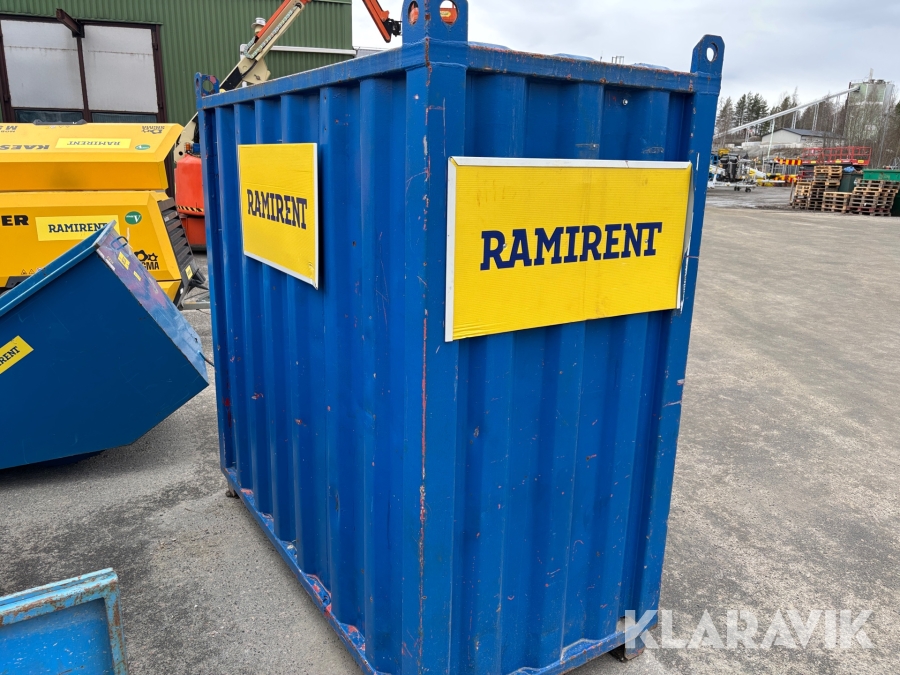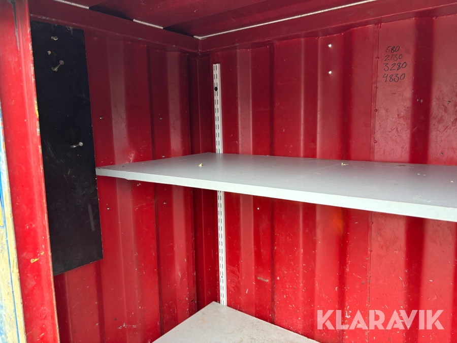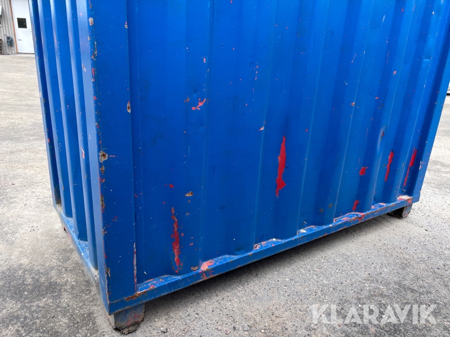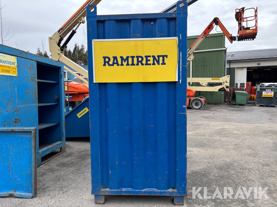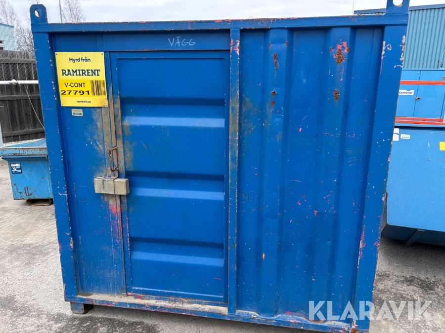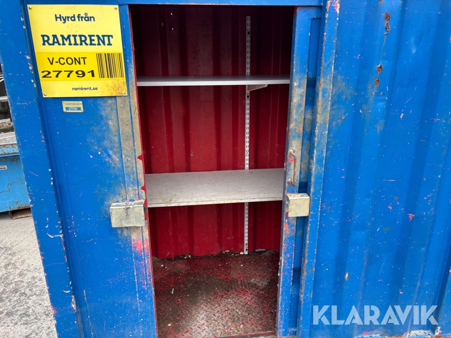 Valvcontainer på 4 fot. Smidig lösning för att få upp ett förråd med inlåsningsmöjlighet upp på ett valv under byggprocessen, men är även praktisk i alla situationer där utrymmet är begränsat.