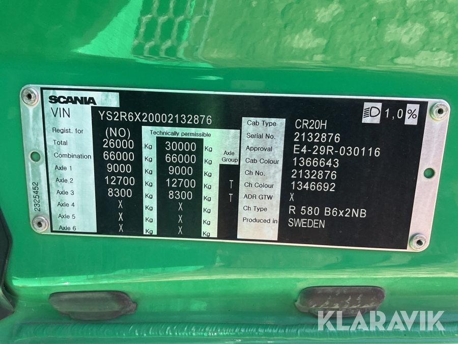 Lastväxlare Scania R580 B6x2NB