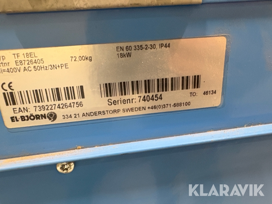 Boka frakt? Det finns ingen specifik information om frakt för just det här objektet, men om du skickar oss en förfrågan via vårt fraktformulär, så undersöker vi möjligheten. Paket, EU-pall eller större maskin? Klaravik har fraktavtal med Schenker och i de fall vi kan hjälpa till med frakt gäller det objekt som ryms i paket eller inom en EU-pall (upp till 120*80 cm och 990 kg). Det går att beställa frakt inom Sverige, dock inte till utlandet. Vid frakt på större maskiner rekommenderar vi gärna transportföretag som du kan kontakta.