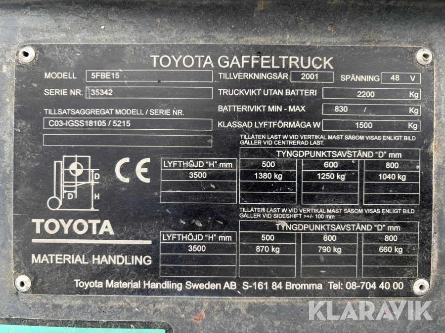 Motviktstruck Toyota 5FBE15