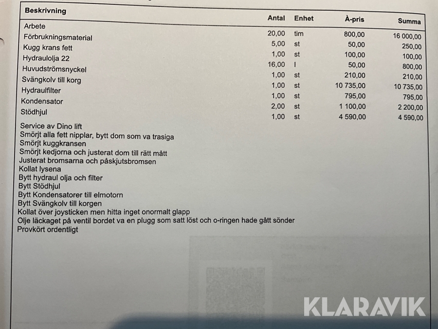Du som köpare är skyldig att kontrollera objektet vid hämtning. Skiljer sig något avsevärt jämfört med informationen på klaravik.se? Kontakta då Klaravik innan du tar objektet från platsen. Läs fullständiga köpvillkor.