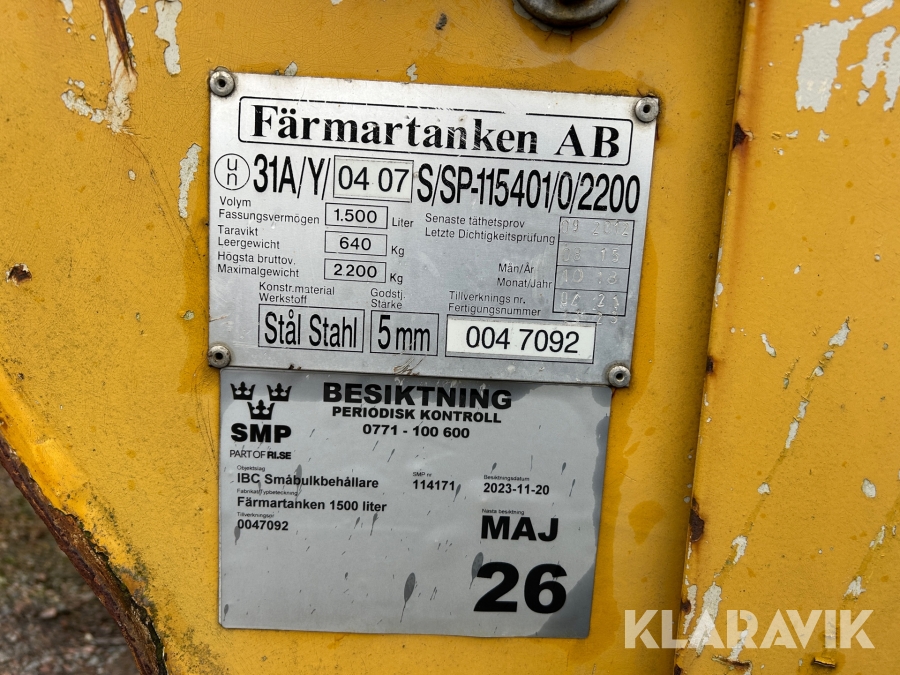 Dieseltank Färmartanken 1500 liter