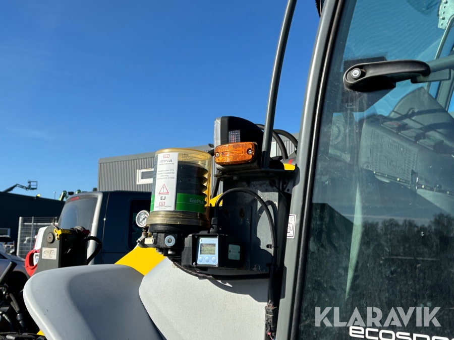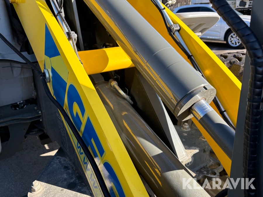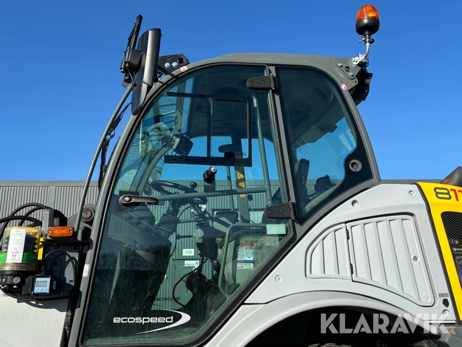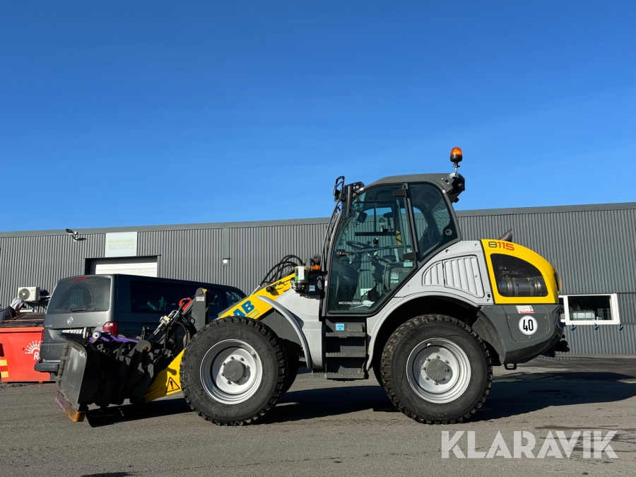 Hjullastare Kramer 8115 med vikplog, planeringsskopa och hydrauliska gafflar