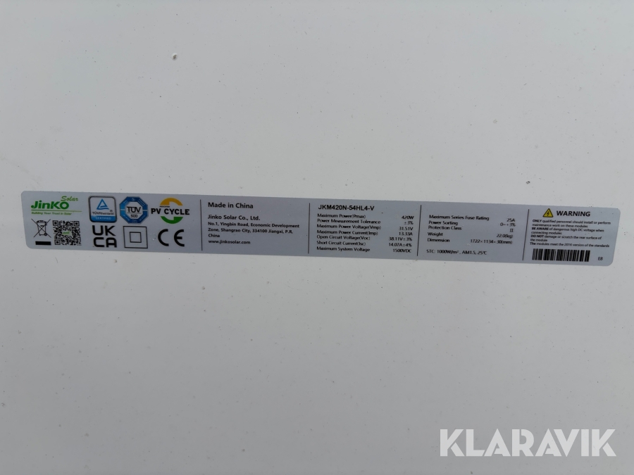 Solceller Jinko JKM420N 420W oanvända