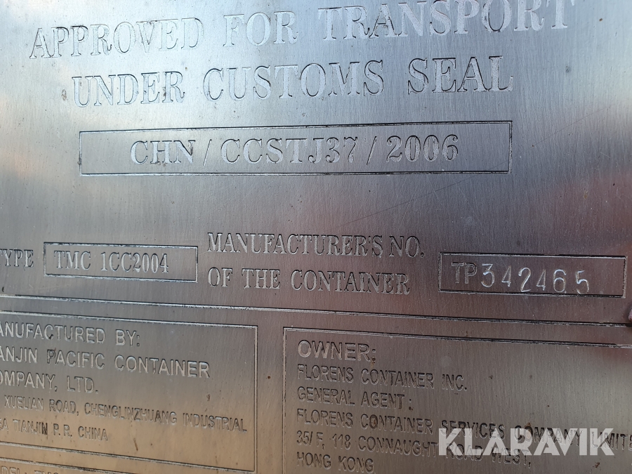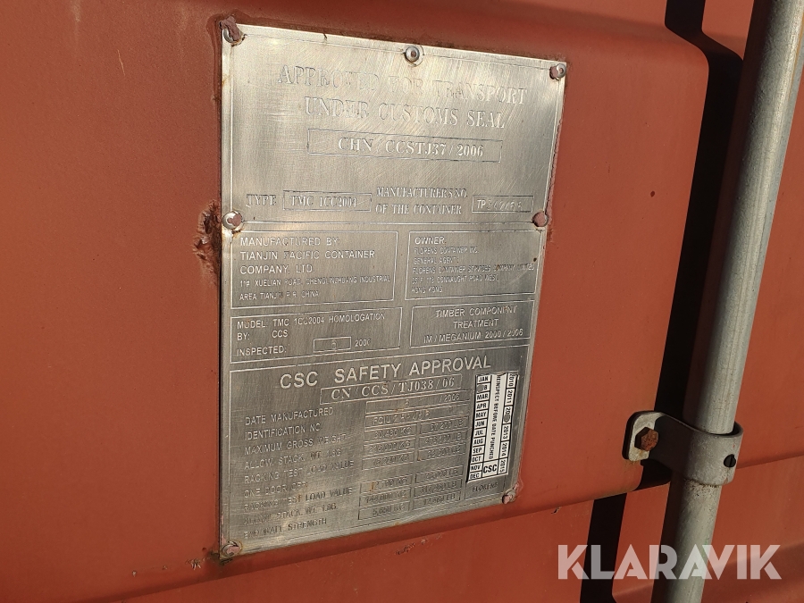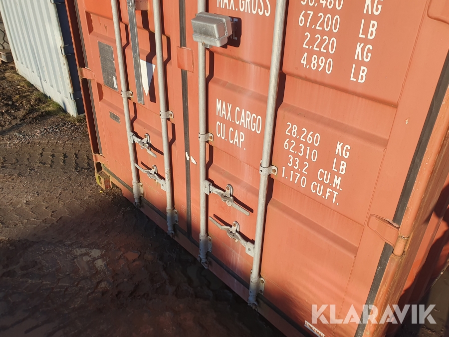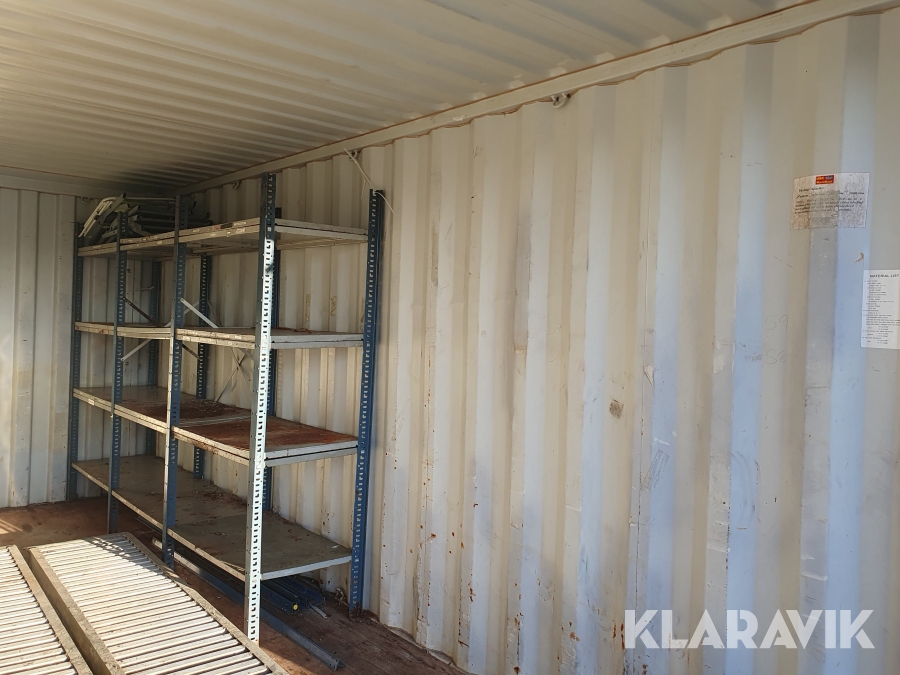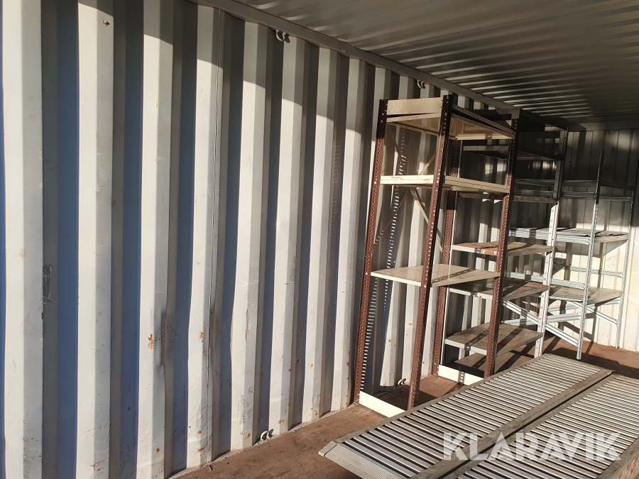 Aluminiumramper samt några hyllor i containern medföljer ej.