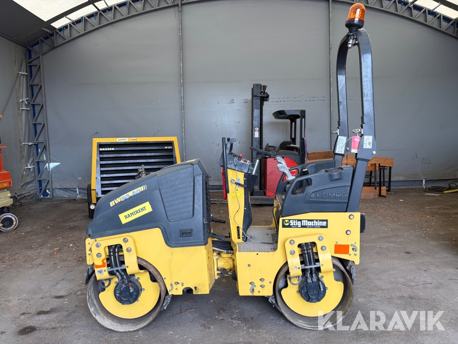 BomagBW90AD5 är en lätt, tandemvibrerande asfalt- och jordvältsmodell – perfekt för gångbanor, lagningar och arbeten på trånga vägarbitar. Den drivs av en KubotaD902motor på 20,2kW (15kW), uppfyllande Tier4/StageV, som tillsammans med hydrostatisk drivning ger både vibration och transport via hjulen. Trumman är cirka 900mm bred och genererar upp till 17kN centrifugalkraft vid 63Hz, med en statisk linjelast på ca8,9kg/cm. Maskinen når hastigheter upp till 4,5km/h vid arbete och 10km/h vid transport, samt klarar lutningar upp till 40% (30% vid vibration). Hydrostatisk styrning med oscillerande led och en 33° rattvinkel ger utmärkt manövrerbarhet. Med ROPS, SAHR-parkeringsbroms, enkel åtkomst för service och ett 100l vattensystem är BW90AD5 ett praktiskt och effektivt val för mindre och medelstora ytjobb