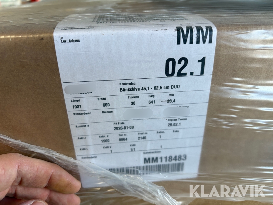Boka frakt? Det finns ingen specifik information om frakt för just det här objektet, men om du skickar oss en förfrågan via vårt fraktformulär, så undersöker vi möjligheten. Paket, EU-pall eller större maskin? Klaravik har fraktavtal med Schenker och i de fall vi kan hjälpa till med frakt gäller det objekt som ryms i paket eller inom en EU-pall (upp till 120*80 cm och 990 kg). Det går att beställa frakt inom Sverige, dock inte till utlandet. Vid frakt på större maskiner rekommenderar vi gärna transportföretag som du kan kontakta.