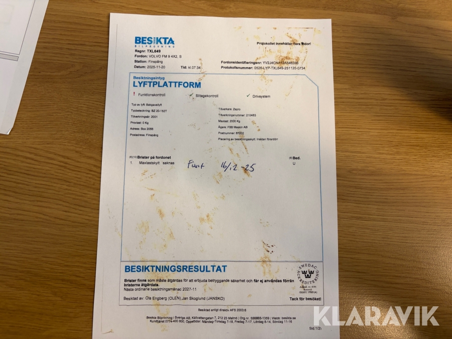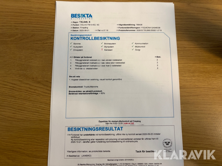 Du som köpare är skyldig att kontrollera objektet vid hämtning. Skiljer sig något avsevärt jämfört med informationen på klaravik.se? Kontakta då Klaravik innan du tar objektet från platsen. Läs fullständiga köpvillkor.
