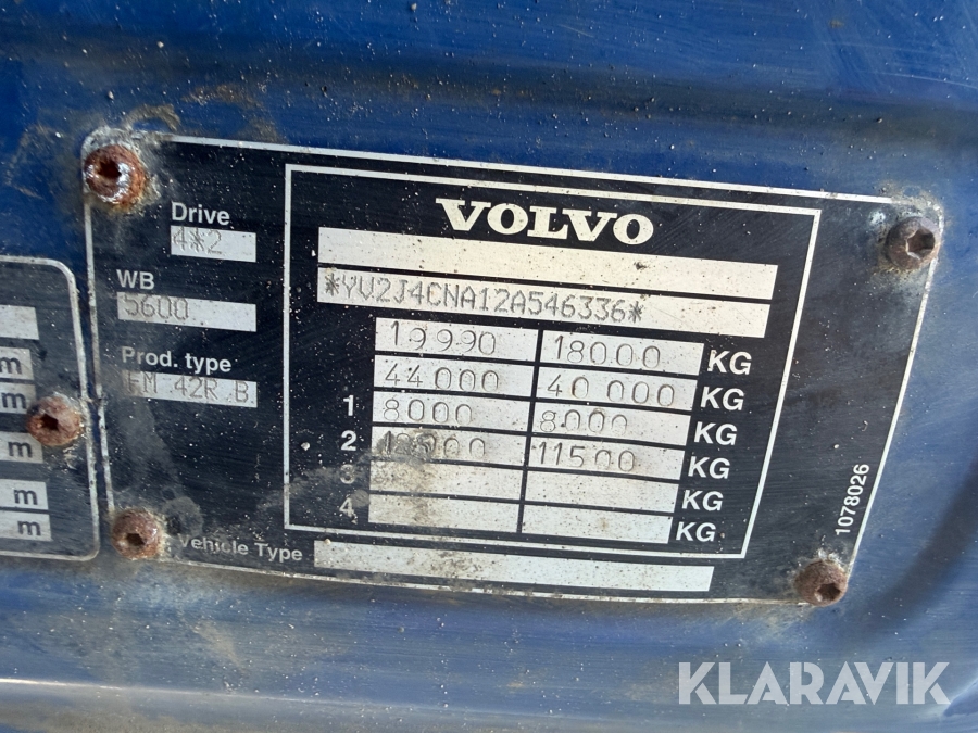 Lastbil Volvo FM9 4x2 med bakgavellyft