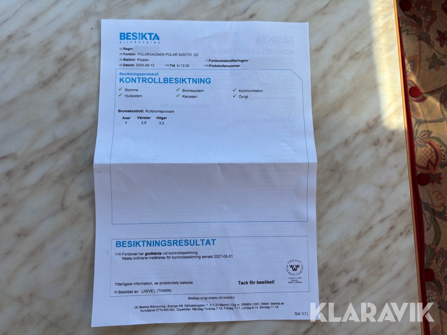 Du som köpare är skyldig att kontrollera objektet vid hämtning. Skiljer sig något avsevärt jämfört med informationen på klaravik.se? Kontakta då Klaravik innan du tar objektet från platsen. Läs fullständiga köpvillkor.