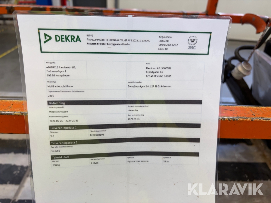 Läs om metodikenPga platsbrist är det viktigt att du som köpare hämtar inom 12 dagar från auktionsavslut. Vid frågor om frakt kontakta trade@ramirent.se.