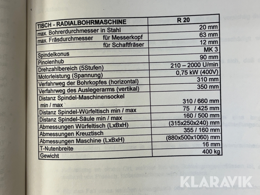 Radialborrmaskin Knuth Gmbh & Co Werkzeugmaschinen KG R 20