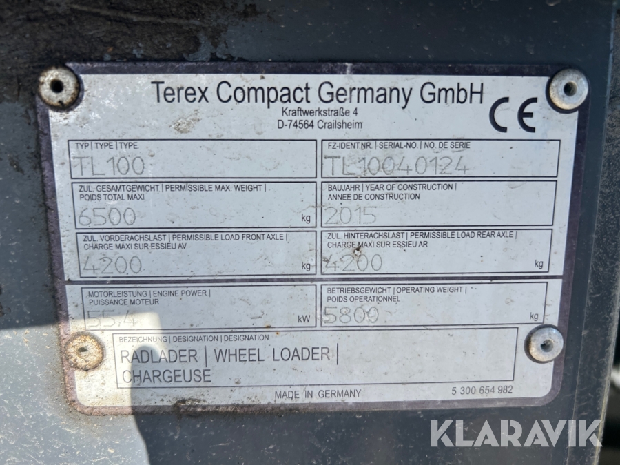 Hjullastare Terex TL100 med redskap
