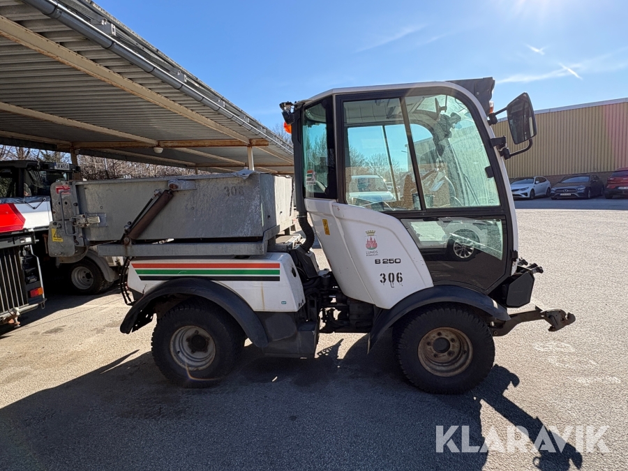 Maskinen startar men är allmänt sliten i skicket. Osäker funktion på Saltspridare.