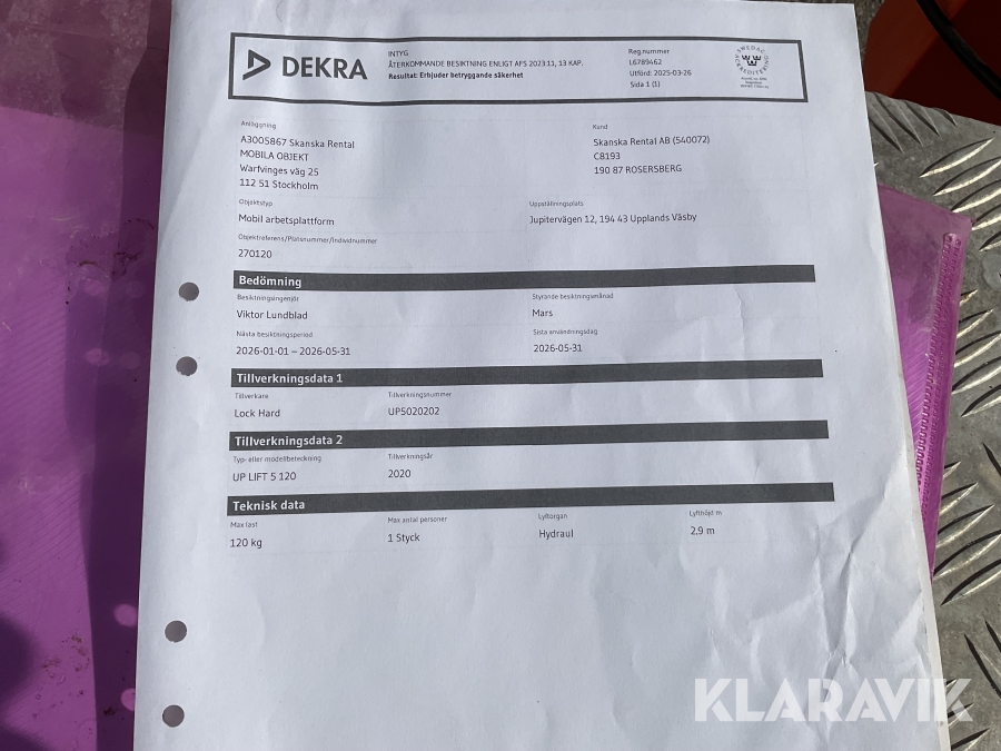 Du som köpare är skyldig att kontrollera objektet vid hämtning. Skiljer sig något avsevärt jämfört med informationen på klaravik.se? Kontakta då Klaravik innan du tar objektet från platsen. Läs fullständiga köpvillkor.