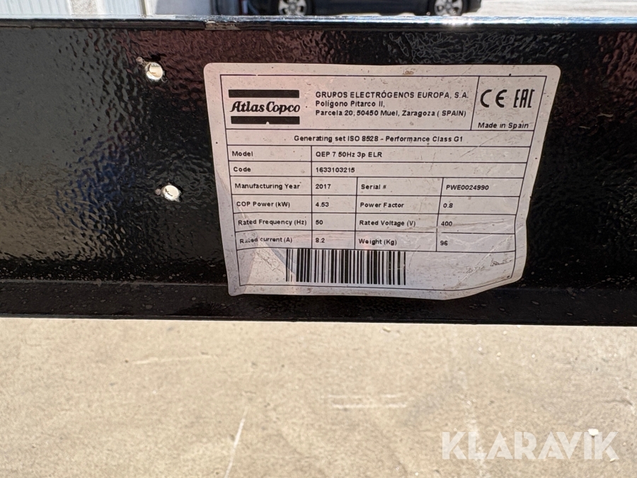 Elverk Atlas Copco QEP 7kva