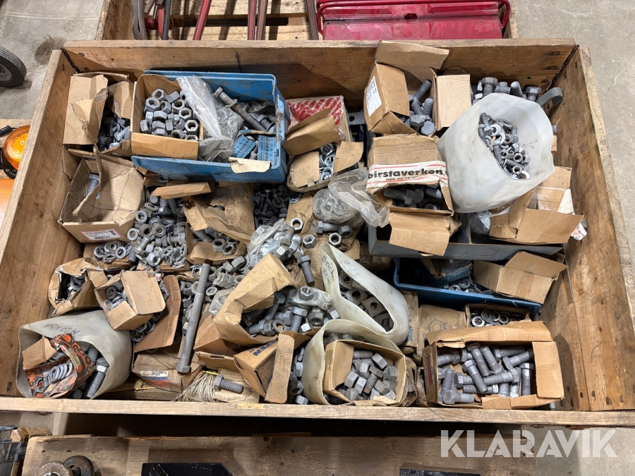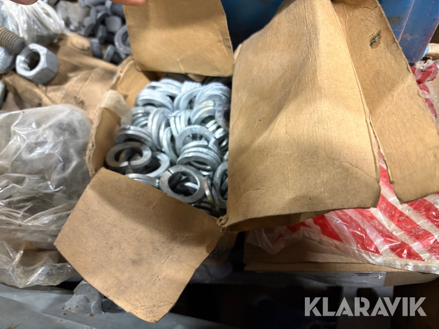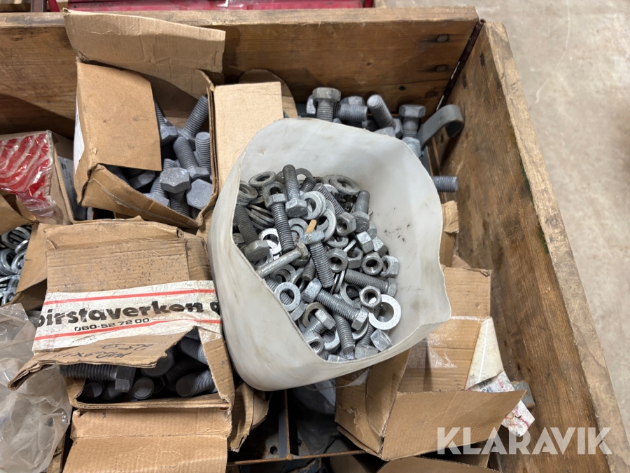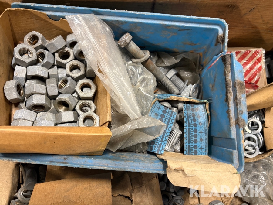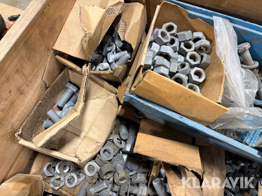 Blandpall med galvade muttrar bultar och brickor