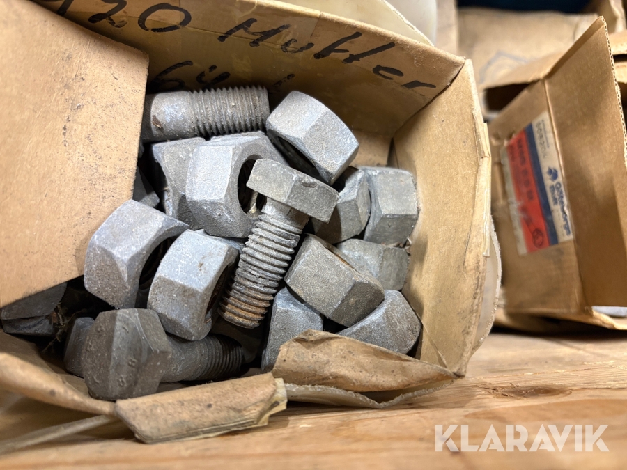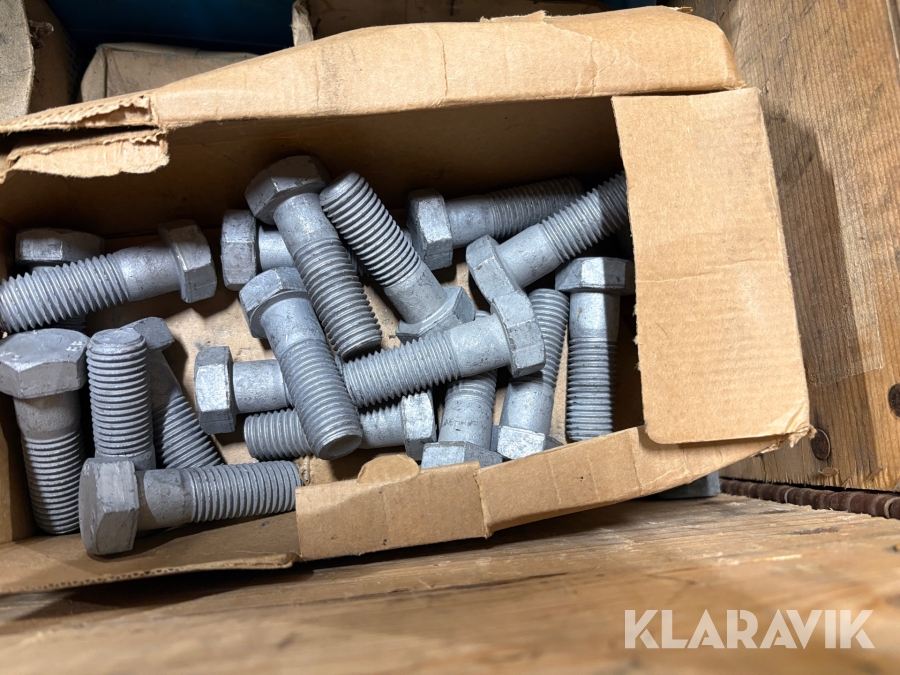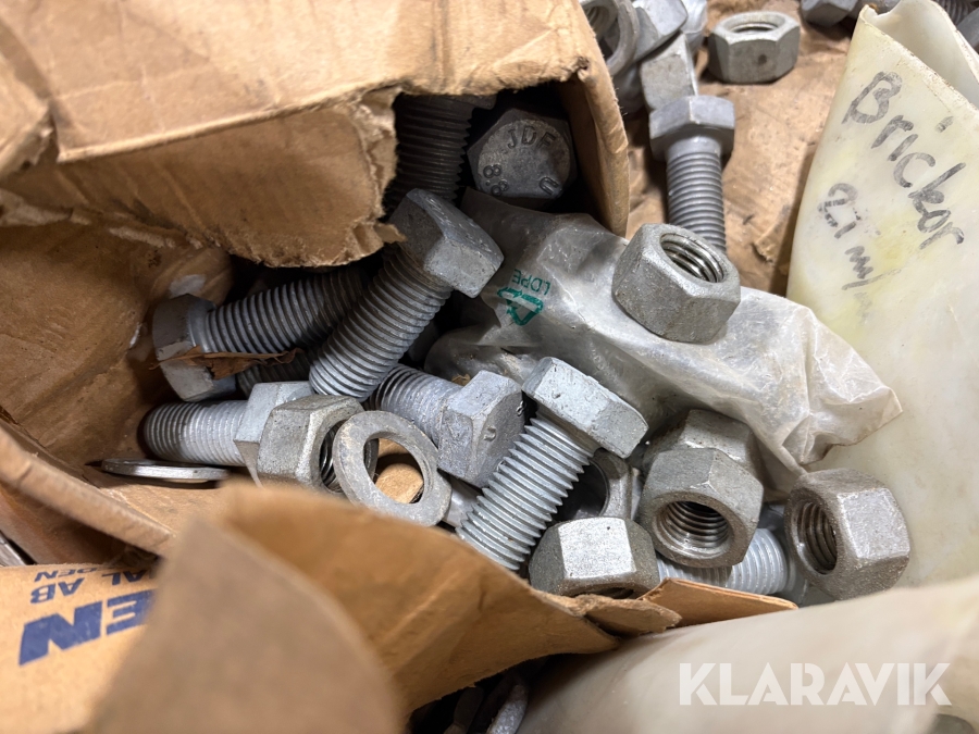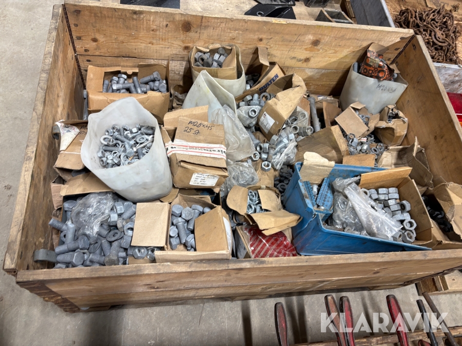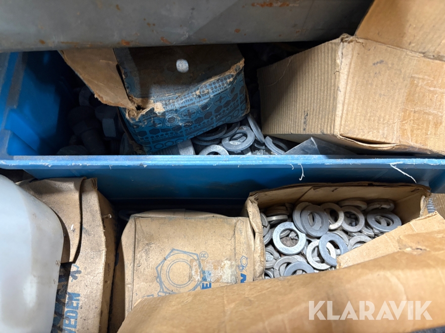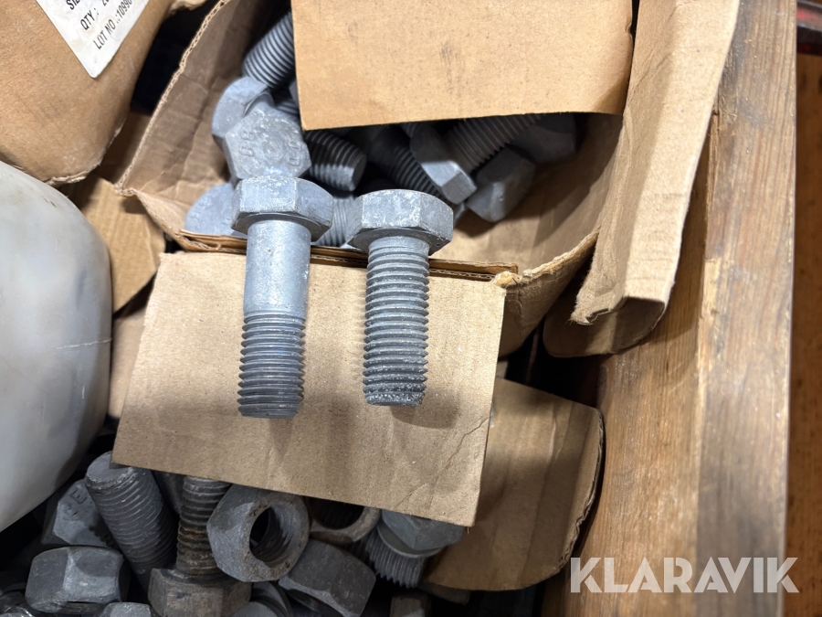 Blandpall med galvade muttrar bultar och brickor