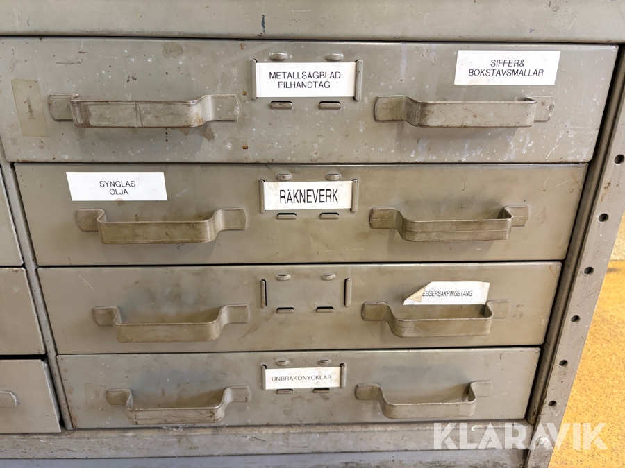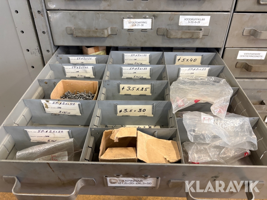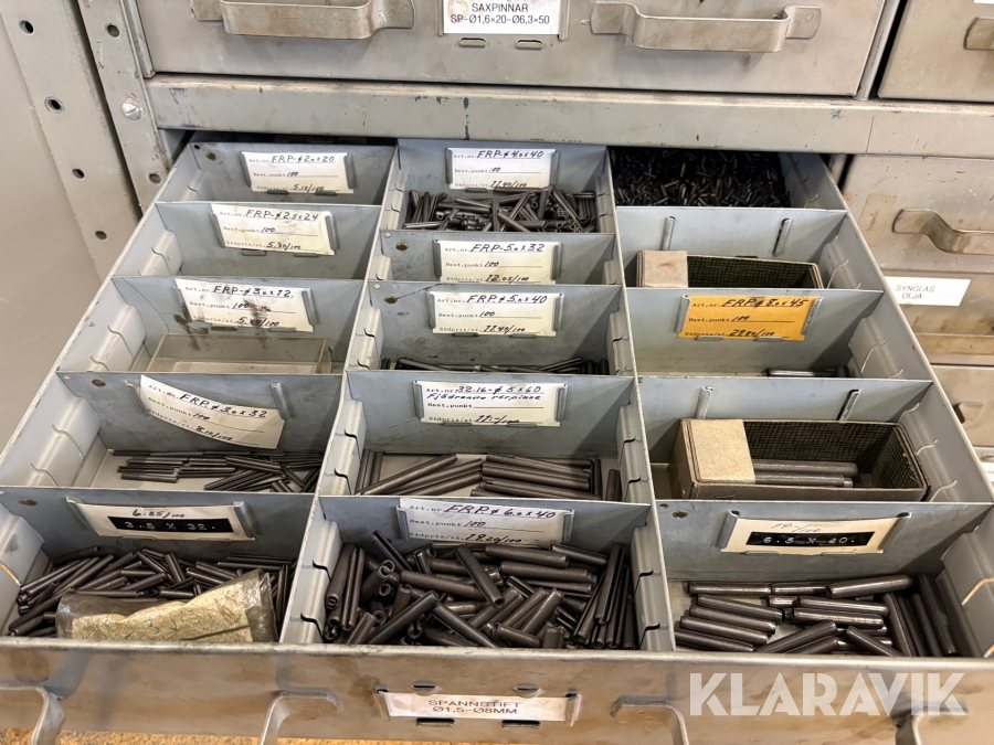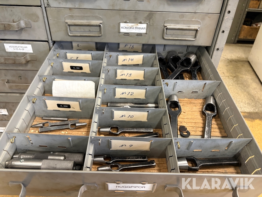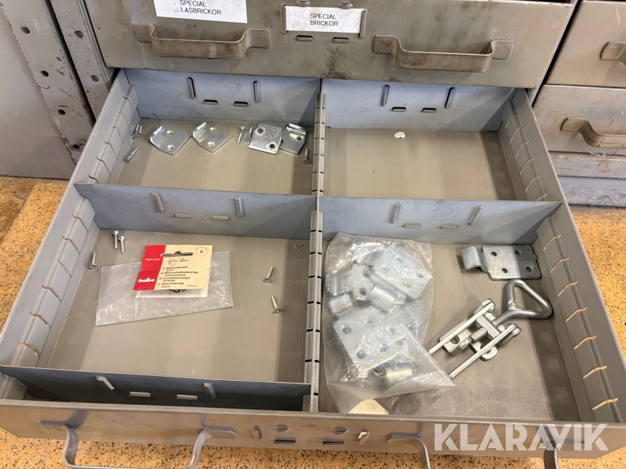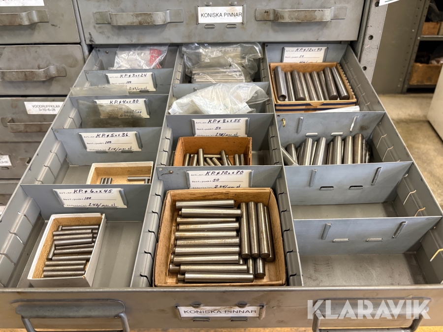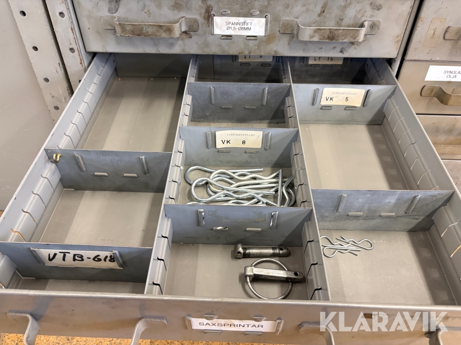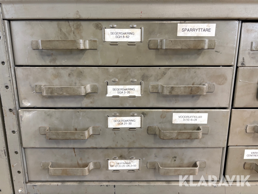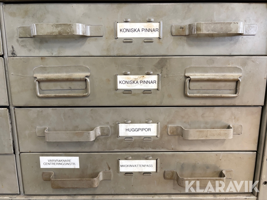 Förvaringsskåp med koniska pinnar, huggpipor, segersäkringar