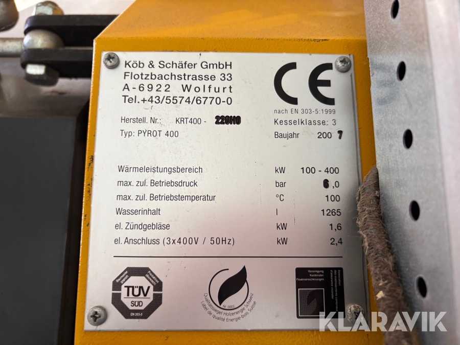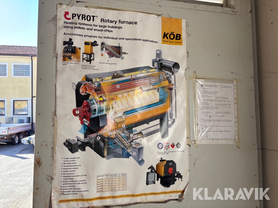 Pelletspanna i container Köb & Schäfer PYROT 400 med silo