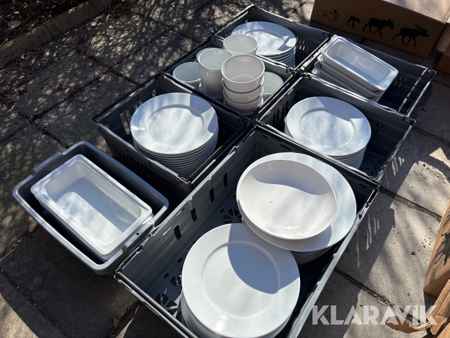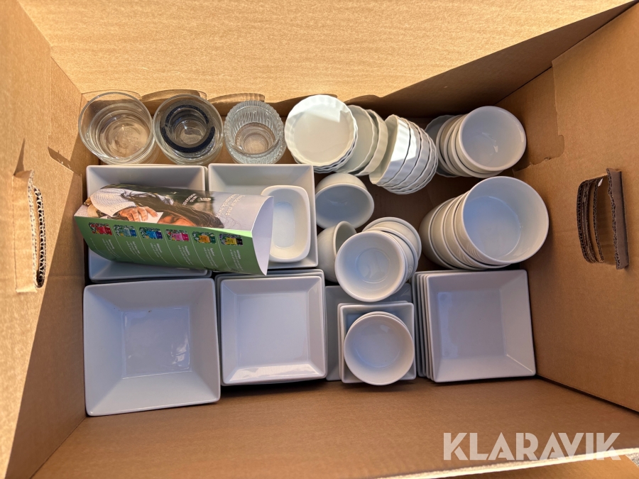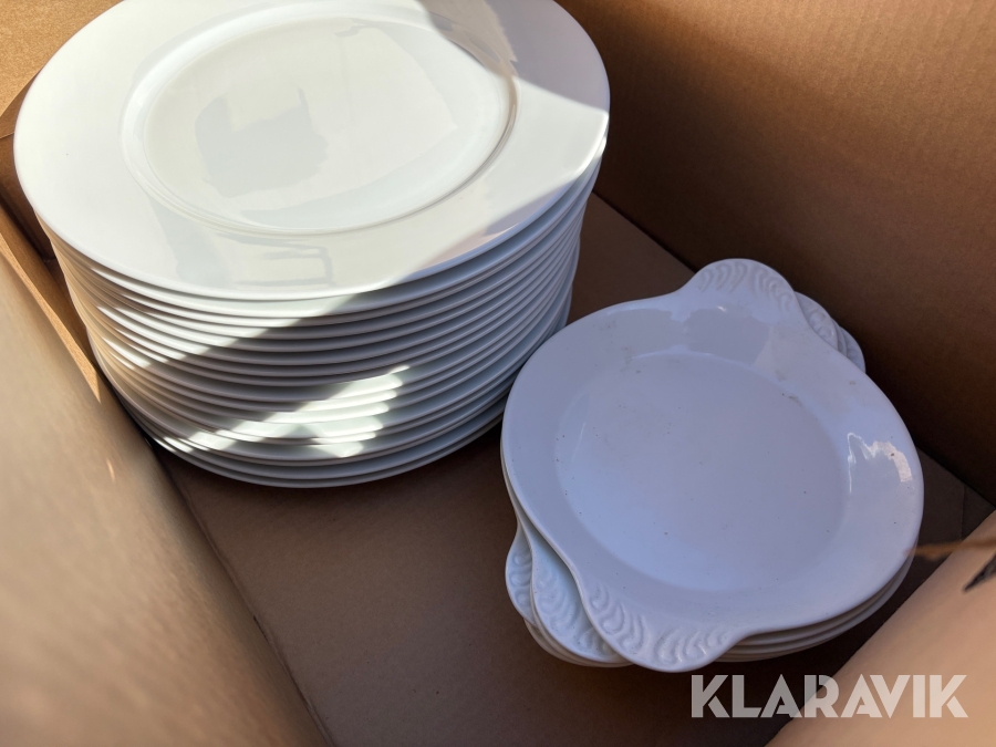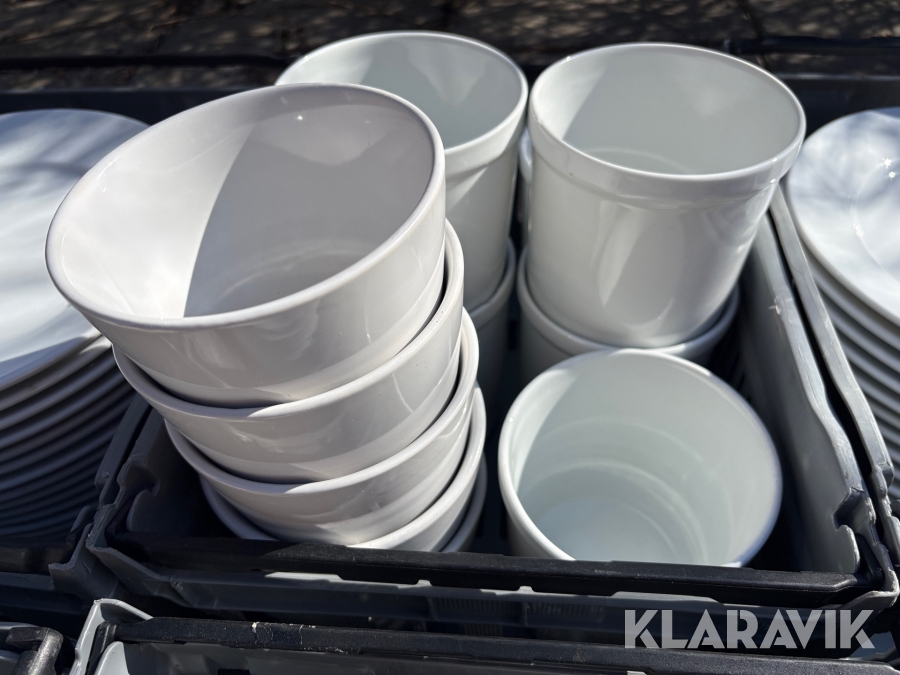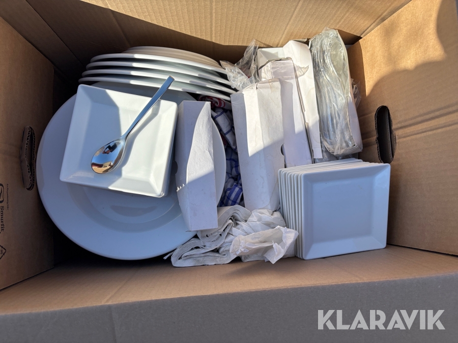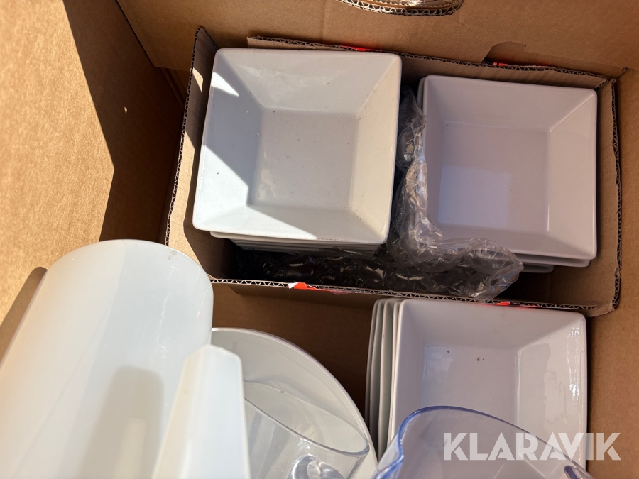 Parti med kökstillbehör, tallrikar, skålar, bestick, fat etc