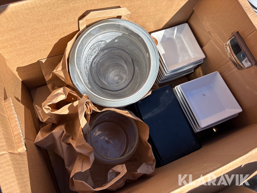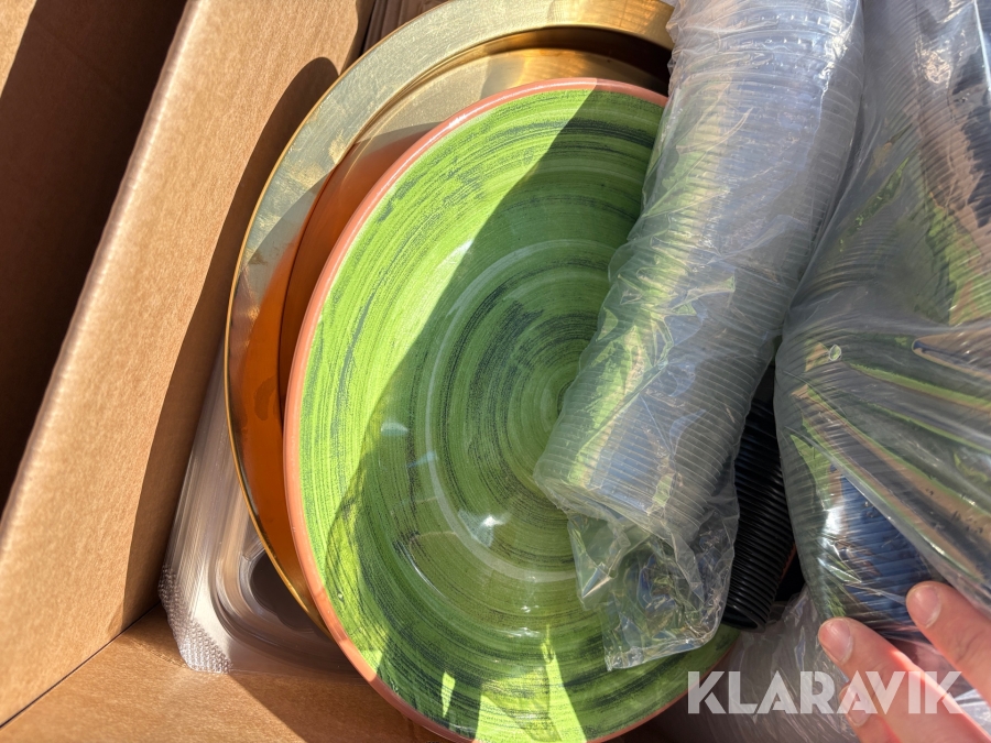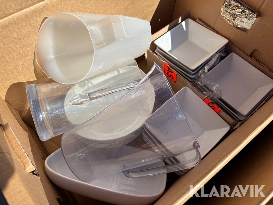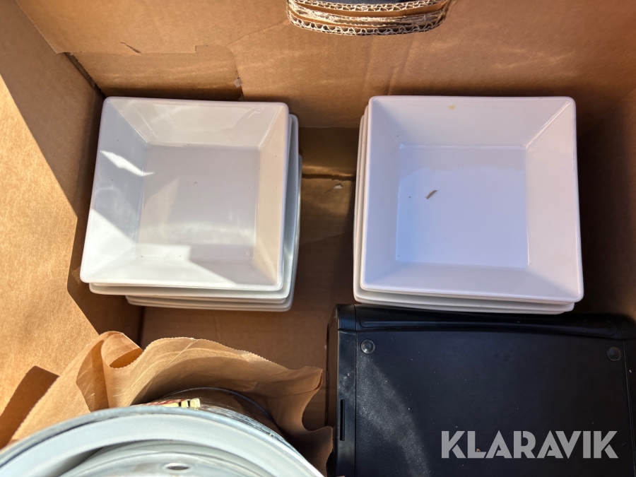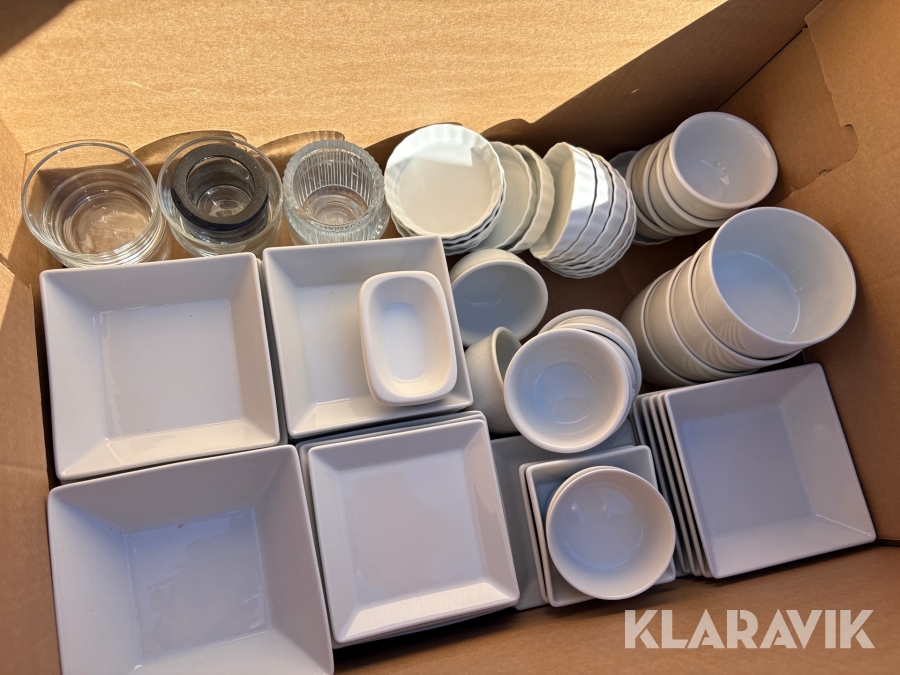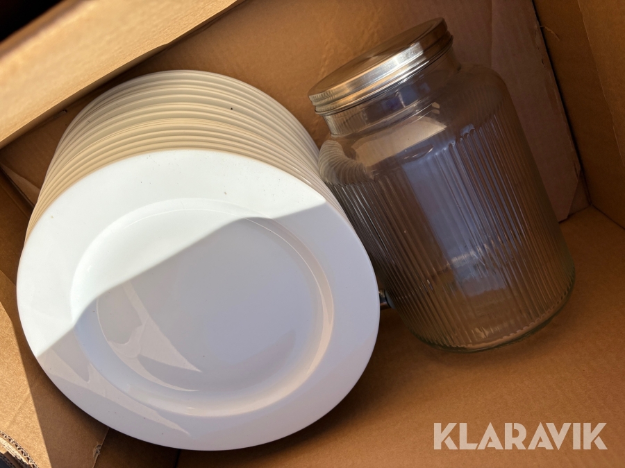 Parti med kökstillbehör, tallrikar, skålar, bestick, fat etc