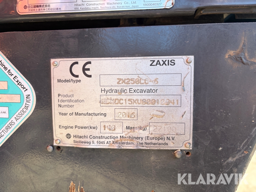 Grävmaskin Hitachi ZX250LC-6 med redskap