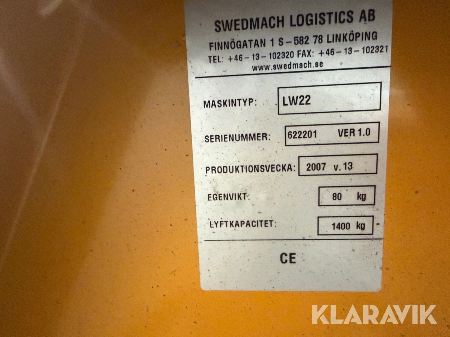 Boka frakt? Det finns ingen specifik information om frakt för just det här objektet, men om du skickar oss en förfrågan via vårt fraktformulär, så undersöker vi möjligheten. Paket, EU-pall eller större maskin? Klaravik har fraktavtal med Schenker och i de fall vi kan hjälpa till med frakt gäller det objekt som ryms i paket eller inom en EU-pall (upp till 120*80 cm och 990 kg). Det går att beställa frakt inom Sverige, dock inte till utlandet. Vid frakt på större maskiner rekommenderar vi gärna transportföretag som du kan kontakta.