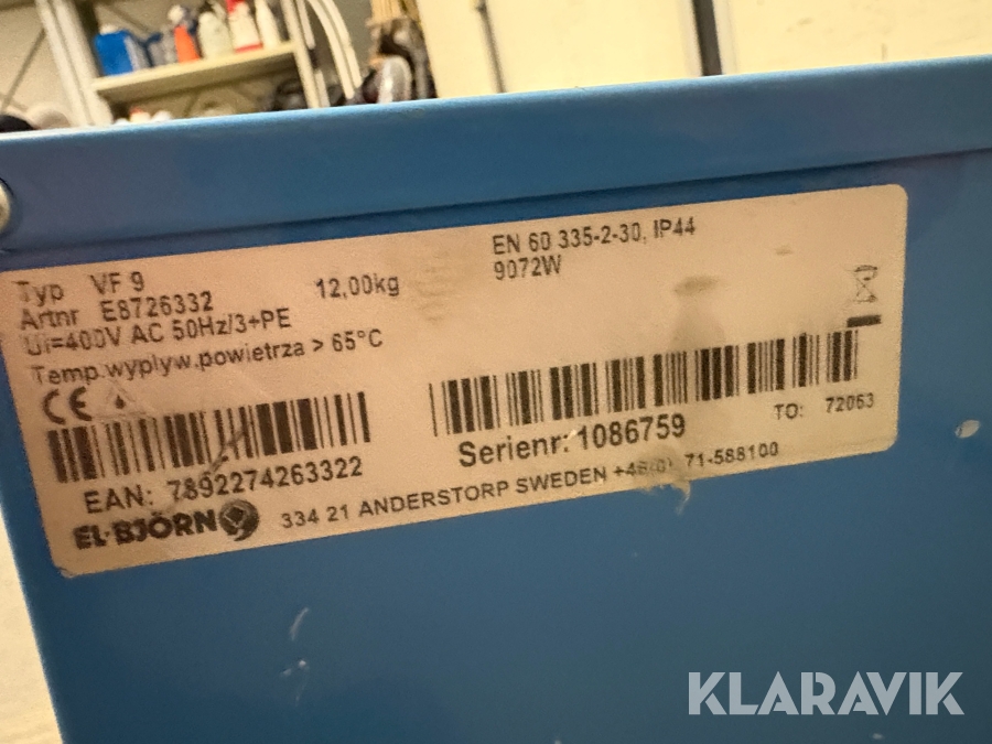 Boka frakt? Det finns ingen specifik information om frakt för just det här objektet, men om du skickar oss en förfrågan via vårt fraktformulär, så undersöker vi möjligheten. Paket, EU-pall eller större maskin? Klaravik har fraktavtal med Schenker och i de fall vi kan hjälpa till med frakt gäller det objekt som ryms i paket eller inom en EU-pall (upp till 120*80 cm och 990 kg). Det går att beställa frakt inom Sverige, dock inte till utlandet. Vid frakt på större maskiner rekommenderar vi gärna transportföretag som du kan kontakta.