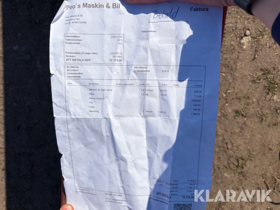 Du som köpare är skyldig att kontrollera objektet vid hämtning. Skiljer sig något avsevärt jämfört med informationen på klaravik.se? Kontakta då Klaravik innan du tar objektet från platsen. Läs fullständiga köpvillkor.