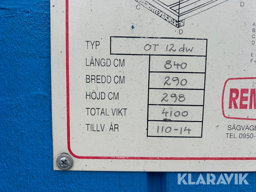 Boka frakt? Det finns ingen specifik information om frakt för just det här objektet, men om du skickar oss en förfrågan via vårt fraktformulär, så undersöker vi möjligheten. Paket, EU-pall eller större maskin? Klaravik har fraktavtal med Schenker och i de fall vi kan hjälpa till med frakt gäller det objekt som ryms i paket eller inom en EU-pall (upp till 120*80 cm och 990 kg). Det går att beställa frakt inom Sverige, dock inte till utlandet. Vid frakt på större maskiner rekommenderar vi gärna transportföretag som du kan kontakta.