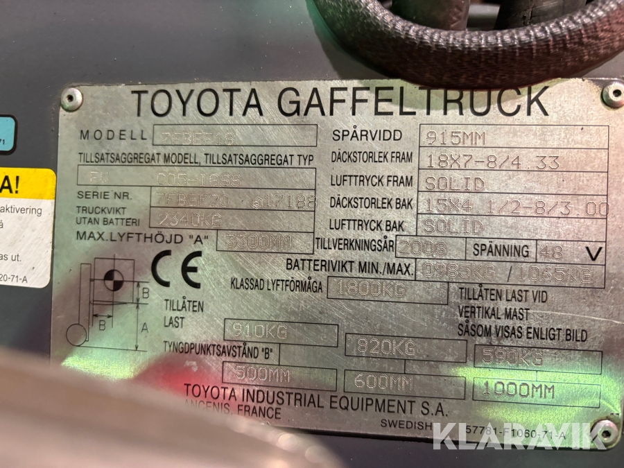 Motviktstruck Toyota 7FBEF18