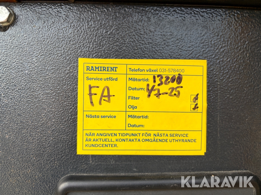 Läs om metodikenPga platsbrist är det viktigt att du som köpare hämtar inom 12 dagar från auktionsavslut. Vid frågor om frakt kontakta trade@ramirent.se.
